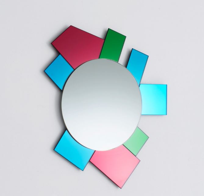 Коллекция из 6 настенных зеркал различных форм и размеров отличается полихроматическими рамками, состоящими из элементов из цветного многослойного зеркала, цветного многослойного стекла и лакированного стекла.