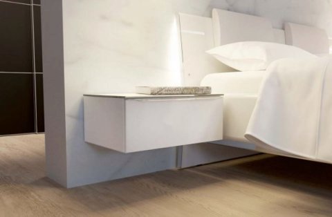 Кровать и дополнительная мебель также предлагают много непринужденной легкости с точки зрения внешнего вида. Акценты из зеркального хрома делают удобную высоту кровати изящной – они идеально сочетаются с расклешенными металлическими ножками. Какая консоль правильная? Любой, кто любит минималистские вещи и хочет только одно место для будильника и книги, может выбрать подвесную консоль с отдельным ящиком. Элегантная консоль с хромированными ножками предлагает больше места для хранения при той же удобной высоте — она доступна с двумя или тремя ящиками.