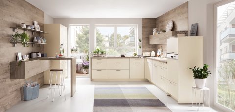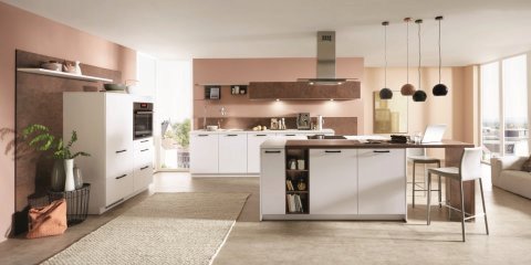 Прямые фасады Fashion в светлых оттенках матового лака. Доступные варианты: цвета : белый, магнолия, светлый , серый . Без ручек, с декоративными или с накладными ручками. Фасады Fashion хорошо сочетаются с акцентными отделками Color Concept.