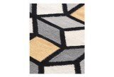 Это килим Rhomb из коллекции Parquet, набор из трех ковров, вдохновленных старинными рисунками паркетных полов. Шведская студия Front применила традиционные конфигурации паркета и геометрию к светлым коврам-килимам в яркой цветовой палитре, которая придает изделиям ощущение трехмерности.