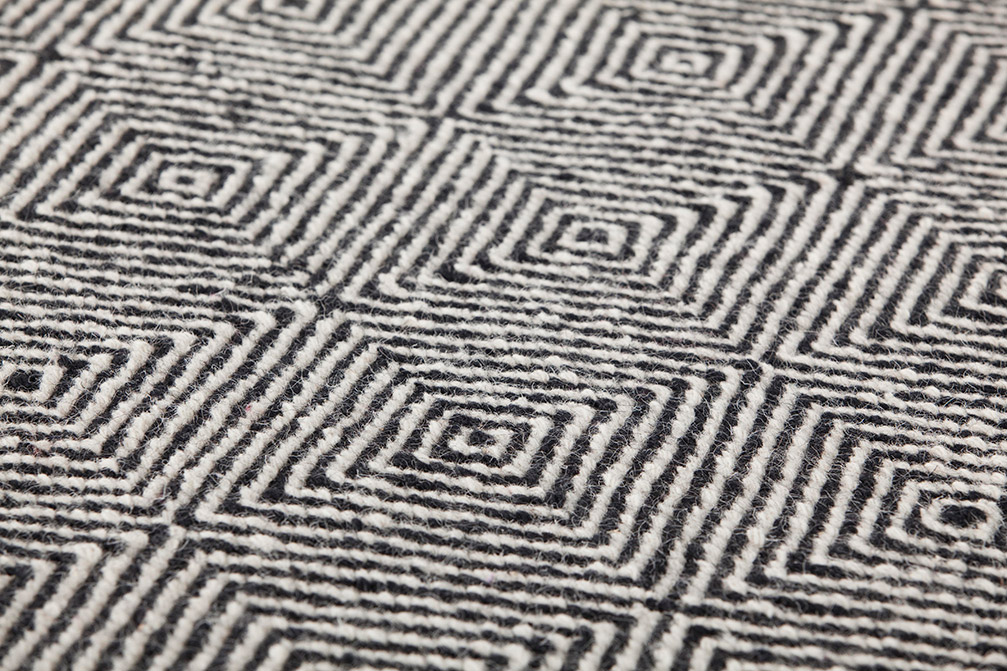 Ковер из коллекции Sail, легкий предмет, изготовленный вручную в Индии на ручных ткацких станках в технике Dhurrie. Это двусторонняя вещь и, кроме того, очень приятная на ощупь, потому что она сделана из 100% натуральной шерсти. Гипнотический ромбовидный узор ткани — это современный взгляд на традиционную эстетику Dhurrie. Доступный в различных размерах, этот ковер сочетает в себе черные и белые нити. Этот же дизайн был применен дизайнером Эктором Серрано к другим элементам коллекции Sail, таким как сиденья в стиле кресел-мешков, пуфы и подушки. Ковер можно использовать в сочетании с этими предметами для создания непринужденной атмосферы или использовать отдельно.