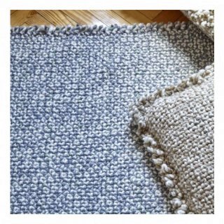 Это светло-зеленый ковер из коллекции Waan, доступный в трех разных размерах, с необычной тканью, имитирующей узелковую поверхность. Однако такое восприятие — всего лишь оптическая иллюзия, поскольку ковер сделан на ткацком станке. Ваан ткут из очень толстой двухцветной пряжи, полученной путем скручивания по спирали двух шерстяных нитей контрастных тонов. Использование этих объемных нитей на ткацком станке выглядит как последовательность узлов. Эта модель выполнена из шерсти белого, светло-зеленого и серого цвета.
