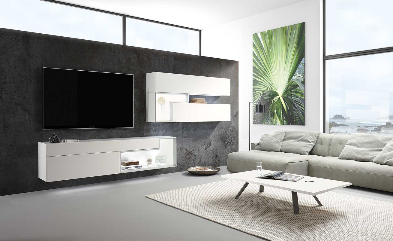 Ядро ореха в качестве идеального акцентного дерева для лаков чистого белого, серого шелка и серого добавляется к ассортименту TETRIM. Игра формы и цвета, закрытые элементы и открытые отсеки - вот что делает TETRIM таким интересным - когда вы смотрите на него и когда настраиваете его. Открытый уголок TETRIM представляет собой отсек с подсветкой с алюминиевой рамой серебристого цвета, который соединяет отдельные элементы хранения в единое целое. Комбинация с оптическим светом также идеально подходит для больших телевизоров. Г-образные элементы придают нужное значение декоративным элементам.