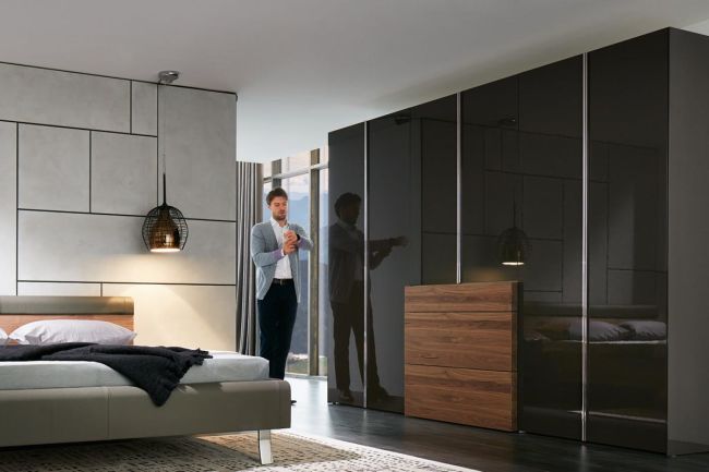 Дизайнерский шкаф приобретает необычные формы с модульной системой GENTIS. Простые шкафы-купе и шкафы-купе с индивидуальной внутренней отделкой можно дополнить промежуточными конструктивными элементами, которые выполнены из пятислойного массива дерева и выглядят как массив натурального дуба или сердцевина ореха. Эти деревянные вставки впечатляют своим аутентичным внешним видом, а также служат местом для хранения вещей: например, есть вместительные ящики для белья.