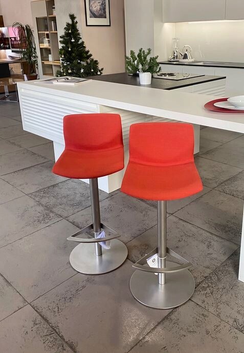 Барный стул на каркасе из матовой нержавеющей стали (в обработке пескоструйным аппаратом). Модель оснащена упором для ног. Высота сиденья из гнутой фанеры регулируется механизмом газ-лифт.