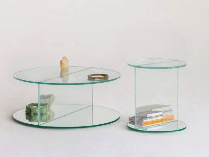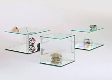 Коллекция низких столиков и консолей, изготовленных из инновационного ламинированного и склеенного стекла, создающего необычайные оптические иллюзии и удивительные сюрреалистические эффекты. Предметы, рассматриваемые сквозь этот материал, словно меняют свою материальную структуру, положение, размер и количество. Основание из ламинированного зеркала отражает и усиливает эти волшебные эффекты.