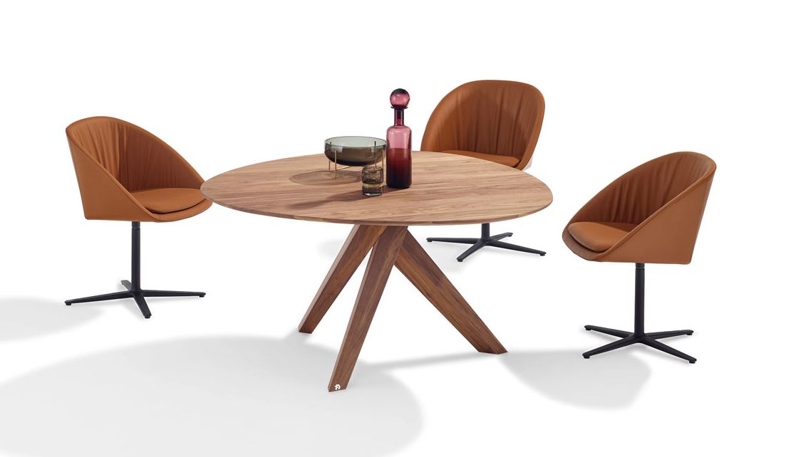 ДИЗАЙН ВОЛЬФГАНГ С. Р. МЕЗГЕР 2018. Форма столешницы Trilope происходит от «треугольника Рело» (также известного как «форма Глейхдика» или «форма Ванкеля»). Этот план этажа был округлен и усовершенствован в соответствии со всеми правилами геометрического искусства, так что мягкий вид столешницы приглашает вас задержаться за столом - очень похоже на круглый стол, но с новым видом и многим другим. присутствие и изысканность. Каркас состоит из трех частей из массива дерева с поразительным профилем, которые соединены тангенциально и, таким образом, не только имеют привлекательный внешний вид, но и обеспечивают максимальную устойчивость. Каркас и столешница образуют идеальное эстетическое соединение и со всех сторон кажутся лаконичной и очаровательной скульптурой в комнате.