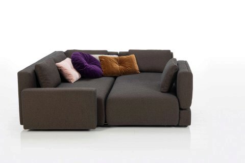 Съемные подушки спинки того же цвета, что и обивка дивана, дополняются подушками с пуговицами, которые можно выбрать индивидуально из коллекции из 39 велюровых тканей. Низкое основание сиденья создает ощущение легкости. Чехлы съемные и заменяемые.