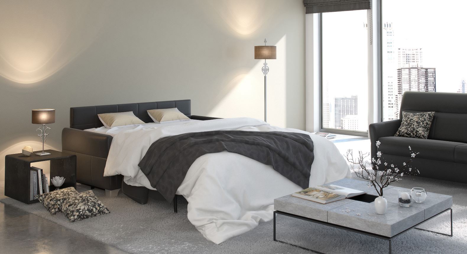 Диван в нужном вам размере +спальное место . Система : французская раскладушка , кожа , ткань на выбор . Образцы ткани и кожи уточнйте у дизайнером салона , так же как и габариты необходимой вам модели.